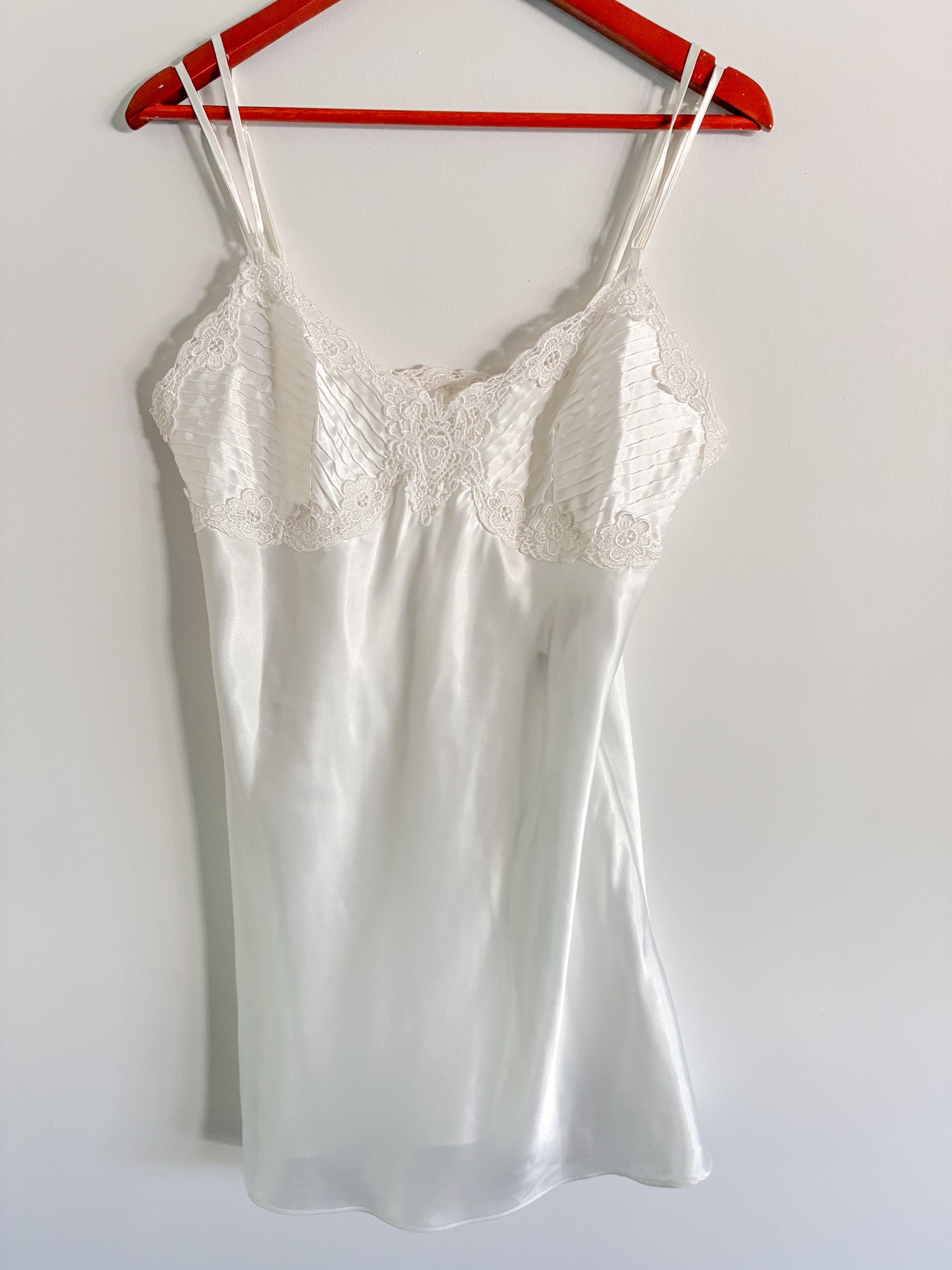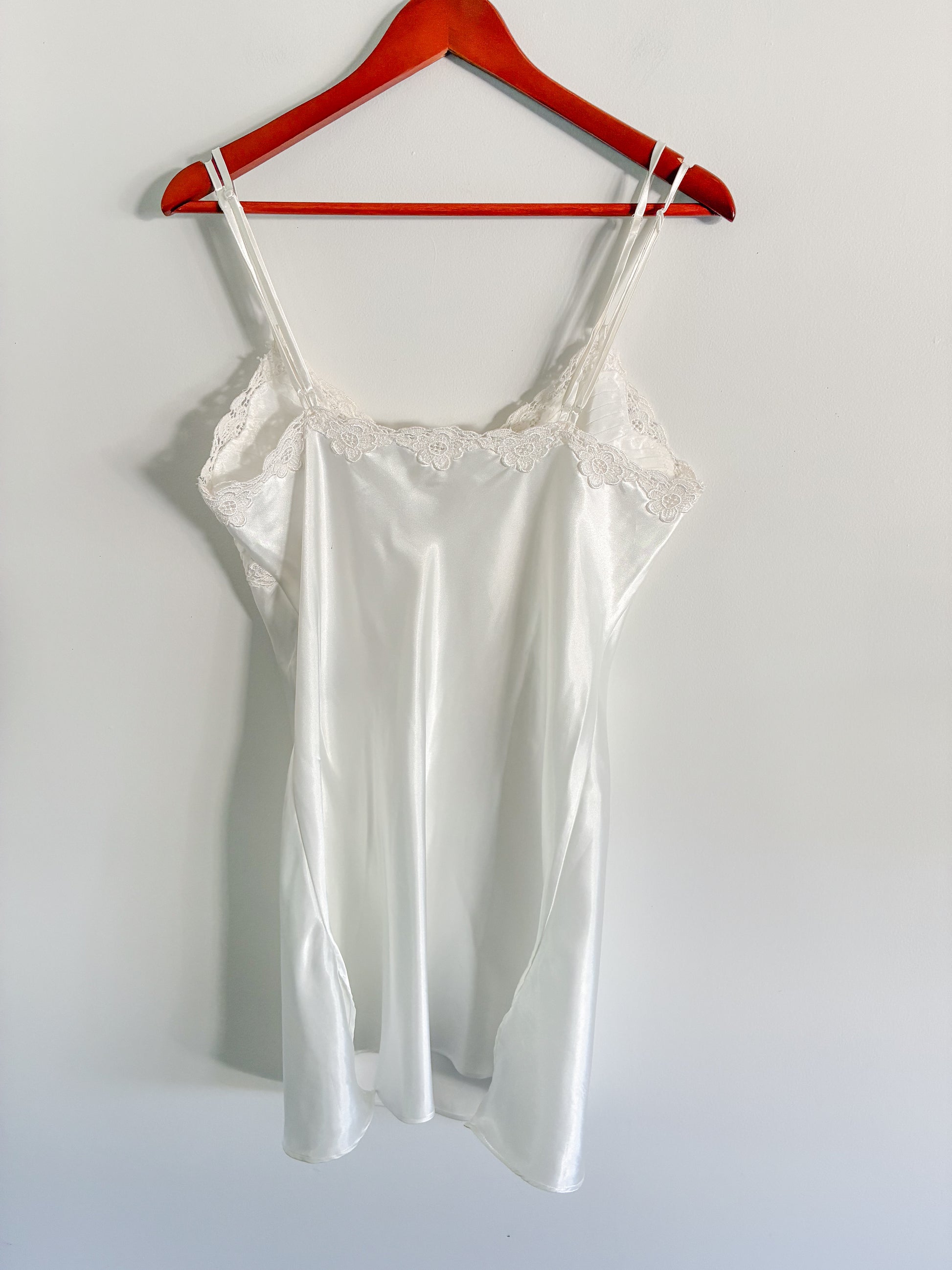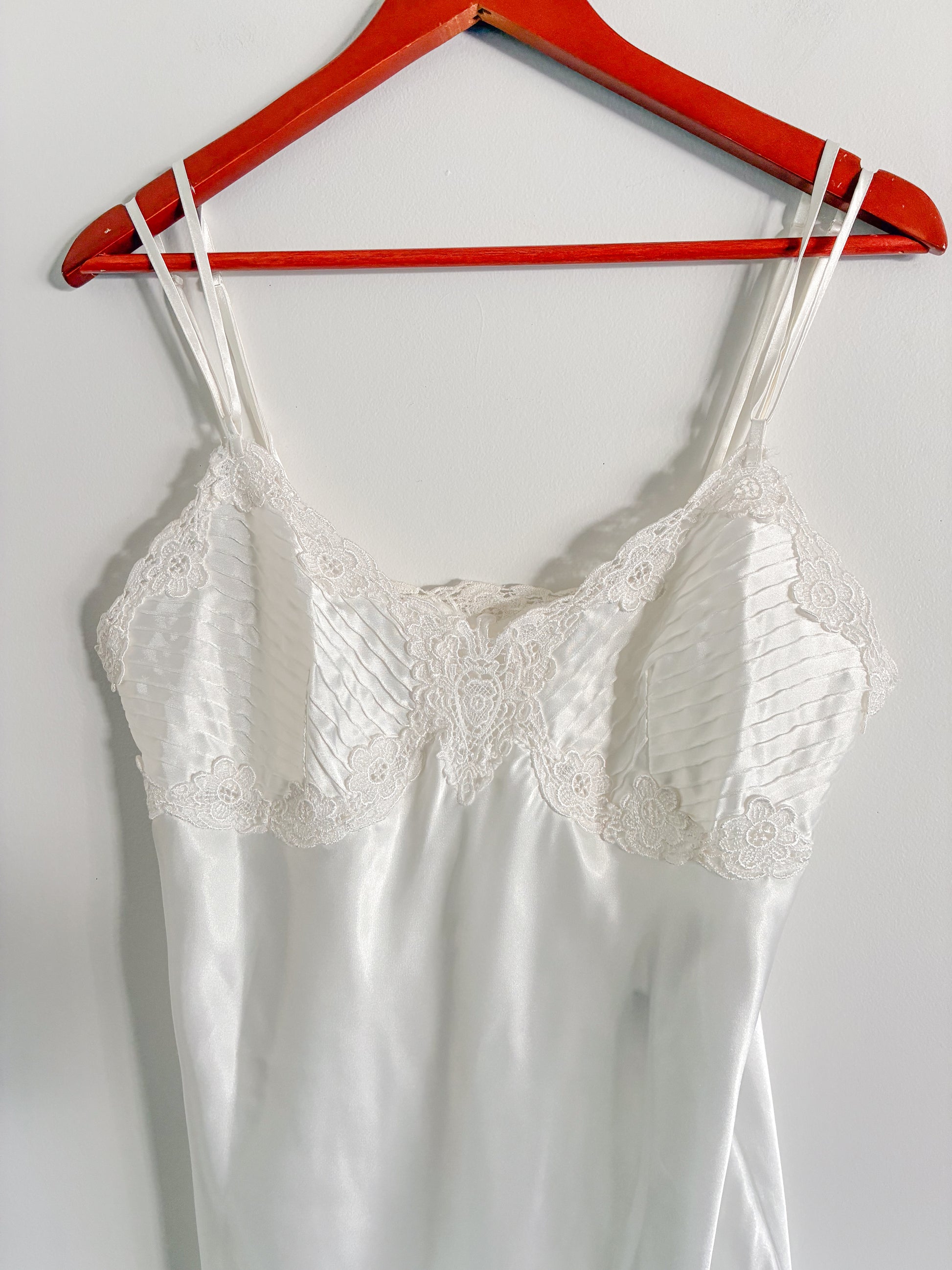This vintage white lace nightgown is in like-new vintage condition and is perfect for lovers of vintage lingerie, retro sleepwear, Y2K slip dresses, and romantic lingerie styles.